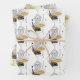 Fun gift wrap sheets features bust of the Greek god Zeus with black rimmed glasses, foliage and geometric elements on white, cream and light grey backgrounds