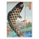 Hiroshige's 1857 print Suidō Bridge and the Surugadai Quarter depicts the view from Surugadai, Kanda River, Suidō Bridge, Edo Castle, Mount Fuji. Koinobori carp streamers place the scene around the Boy's festival on the 5th day of the 5th month. Ukiyo-e ("pictures of the floating world") is a genre of Japanese woodblock prints (or woodcuts) and paintings produced between the 17th and the 20th centuries, featuring motifs of landscapes, tales from history, the theatre, and pleasure quarters. It is the main artistic genre of woodblock printing in Japan. The Floating World store on Zazzle painstakingly restores these historical treasures to vibrant colour and fixes basic aging issues. Paper texture and colour values are maintained because it reveals the aged beauty of these master works of art.