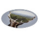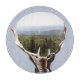 A digital painting of a buck's head with a view of tree filled hills held between his antlers. This image has no background, you may choose a different background colour than what is selected.