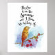 Eye on Sparrow Wall Art - Words are excerpt from scripture in Matthew 10:29-30, includes calligraphy type with "His eye is on the Sparrow and I know he watches Me" is in curved, modern brush script above Elegant Colourful Sparrow sitting on branch with flowers on watercolor background illustration.