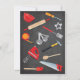 Super cool and modern His and Hers Couples Shower invitations for the couple that needs tools for him and kitchen items for her, or vice-versa! Features tools and kitchen items on the back and front on invitation with fun typography against a chalkboard background. Hand drawn illustration by McBooboo.