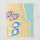 Pretty aqua turquoise blue and sandy brown vector graphic with two pairs of flip flop sandals and pink starfish on the beach shore. A pretty and soft pastel coloured image great for beach weddings, parties and special occasions.