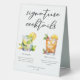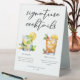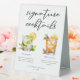 This His & Hers rum based signature cocktails table tent sign features simple black typography above 2 of your favourite drinks and their ingredients for your coastal wedding bar. A chic Mojito and Mai Tai drawing add a fun flair to your bar menu. Complete with the couple's names and date for their reception.