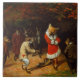 This design features a painting by the American artist William Holbrook Beard (1824–1900), for his satirical paintings of animals performing human-like activities. It shows a swaggering fox, which is wearing an elegant royal robe, intimidating and bullying a rabbit. Foxes are often seen as sly and crafty creatures, perhaps because they have a brutal need to hunt and kill in order to survive. The other animals are wearing business suits and they watch the scene with menace in their eyes. It is a satirical fantasy that tends to amuse and stimulate thought in both children and adults alike. The original painting was completed in 1885, and it is now housed in the Indianapolis Museum of Art (IMA), Indiana, USA.