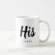 This elegant and trendy coffee mug says "His" in a stylish font. It's personalizable, so you can change the name on the mug. Perfect for girlfriend and boyfriend, for newlyweds or any couple, really. Also a great gift idea! The matching "Hers" mug is available in this shop as well, so look out for that one!