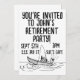 RETIREMENT INVITATIONS. GUY RELAXING AND FISHING IN A BOAT ART.