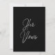Your wedding is a celebration of your love. Customise your special day with our custom Vows card and carry through the details to every corner of your ceremony. Size: 5 x 7" Paper Style: Matte finish with an acid-free smooth surface. Paper Type: 110 lb., 12-point thick cardstock Note: This listing is for a flat front-back card with a blank back side where you can write your vows.