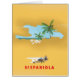 Hispaniola map, sandy beach and palm trees of the Caribbean island.