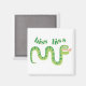 A dark and light green snake with red forked tongue and green text that reads Hiss Hiss on T-shirts, mugs, bags, cards, pillows, magnets, and more, great for kids and adults.