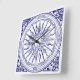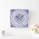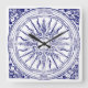 Historic Nautical Compass Blue & White Print Square Wall Clock