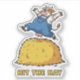 This fun cartoon-style sticker features a humorous design evolved on the saying "hit the hay" with an energetic cow jumping over a haystack. Great for those who love to sleep or jump into bed at every chance they get.