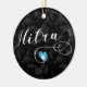 Christmas ornament / decoration with Hitra flag in a heart, with scripted font design.