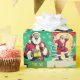 In light of current events, Santa's turned to hoarding and denial. And he's overcompensating by being overly excited. Text reads: "It's the holiday and I'm okay. I said I'm fine!" and "The end may be near but we wish you good cheer".