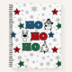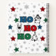 Ho-Ho-Ho Christmas design with snowflakes, snowman, Christmas tree, reindeer and colourful stars decoration on white background