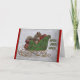 Christmas card featuring cute, funny image of Squirrel in a Christmas Sleigh with humourous commentary from the Squirrel “HO! HO! HO!”