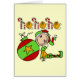A cute Christmas holiday design features an elf dressed in a red stocking cap and pointy elf shoes resting against a tree ornament ball and candy cane striped text reads Ho Ho Ho on holiday T-shirts, mugs, bags, sweatshirts, keepsakes, buttons, magnets, stickers, and more!