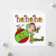 A cute Christmas holiday design features an elf dressed in a red stocking cap and pointy elf shoes resting against a tree ornament ball and candy cane striped text reads Ho Ho Ho on holiday T-shirts, mugs, bags, sweatshirts, keepsakes, buttons, magnets, stickers, and more!