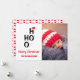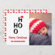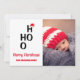 Ho Ho Ho: Merry Christmas! Minimalist gifts with family name and red Santa hats. Photo template via Pixabay licensed under CC0 and must be replaced with your own photo