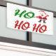 Banner with ho ho ho in 3D green and red text and Santa Claus. Available in several sizes for indoor and outdoor.