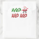 Stickers with ho ho ho in 3D green and red text and Santa Claus. Stickers are available in several shapes.