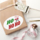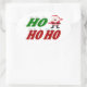 Stickers with ho ho ho in 3D green and red text and Santa Claus. Stickers are available in several shapes.