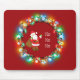Festive Santa with a circle of Christmas light bulbs holiday mousepad for office, home or school.