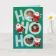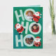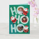 A roly poly little Santa laughs a big "HO HO HO" against a green background in this customisable Christmas card. Design allows for 3 photos, each framed inside an "O," and customising name inside.