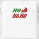 Stickers with ho ho ho in 3D green and red text and Santa's sleigh. Stickers are available in several shapes.