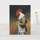 This card is illustrated with a vintage hobo rooster carrying his belongings over his shoulder.