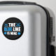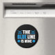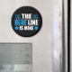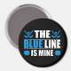 Hockey Blue Line magnet features blue pucks and hockey sticks with white and blue text that reads The Blue Line is Mine.
