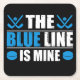 Hockey Blue Line coaster features blue pucks and hockey sticks with white and blue text that reads The Blue Line is Mine.