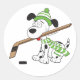 Hockey stickers are great for the hockey kids. Hockey dog with a hockey stick in his mouth and wearing a green hat and scarf