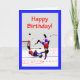 A birthday card with my original digital artwork of two hockey players in various stages of tripping and falling, for hockey fans and players. Text says "Happy Birthday!"