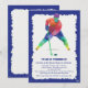 A trendy invitation featuring a hockey player in geometric form with a grunge blue frame. Perfect for any age hockey fan.