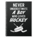 **Title:** Hockey Gifts For Boys Kids Player Children School Notebook - Never Underestimate A Boy Who Loves Hockey