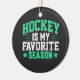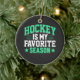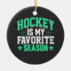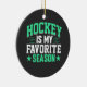 Hockey ornament with green and white text on a black background reads Hockey is My Favourite Season!