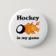 Hockey is my game button. Hockey puck and flame. Great gift idea.