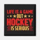 Life is a Game But Hockey Is Serious red and gold text hockey magnet.