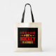 Life is a Game But Hockey Is Serious red and gold text hockey tote bag.