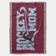 This cool hockey Mum design features textured ice blue hockey Mum words with an athletic tail and a player silhouette.