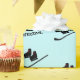 A hocky motif of skates and a stick for the hockey fan or player. Light blue background and a black repeat graphic give this a laid-back, minimalist and masculine feel. Add a name of your choice or custom text for any male occasion.