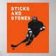 Ice hockey design featuring player and funny motivational line on team orange background.