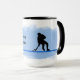 A quality coffee mug for any hockey player or fan. The design features the silhouette of a player in action and placed on an artistic blue background. Personalize it with a name on the background. The text is easily changed by using the template. Selecting “Personalize this design” offers you several edit options to easily change the text (wording, plus type font, color, size, position) and to edit the design elements. You may also want to scroll down to the section “Transfer design to a product” for a few suggestions about other items this design can be used on. Other mug styles are also available for this design. Check out Options.