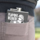 The flask itself is fine. It’s a cheap flask, obviously bought in bulk, however am prepared to overlook that. Given that it is a personalized item, I would have liked to have seen gift boxing instead of the generic packaging. Terrible printing, and/or quality. It’s a cheap, tacky vinyl. It is not cut straight and is also applied in a way that it is overhanging the bottom, causing the glue to catch on items and it will eventually roll and tear, damaging the wrap.