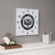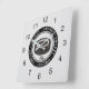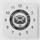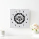 Sports themed wall clock printed in black and grey with a hockey puck graphic in the centre and room for your initials. Your choice of square or round. Change the hands' and background colour if desired.. Great for a kid's or dorm room or the man cave.