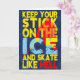Custom made greetings cards and invitations with an original Game Face Gear design. Easy to edit templates, front text and inside text can be changed to whatever you want! Great for all your sports mad family and friends. A big n bold ice hockey design in yellow, red and blue, with the text Keep Your Stick On The Ice and Skate Like Hell