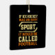 Hockey Versus Football ornament features text of yellow and gold and two hockey sticks. This hockey player ornament reads If Ice Hockey Was an Easy Sport It Would Be Called Football!