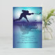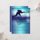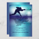 A handsome invitation for your hockey-fan/player's birthday celebration. Dazzling deep violet, plum and teal colours create the background for a hockey player's silhouette whose reflection is mirrored on the "ice". (FP)