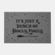 Create a magical entrance to your home this Halloween with this "It's just a bunch of Hocus Pocus" witch quote doormat. Decorative typography lettering is accented with spooky scrolls, twinkling stars, and a witch's broomstick. Charcoal grey and black colour scheme.