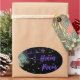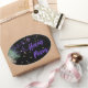 A perfect Happy Halloween Hocus Pocus gift label or sticker designed with vibrant violet lettering and smoky stars on a black background.